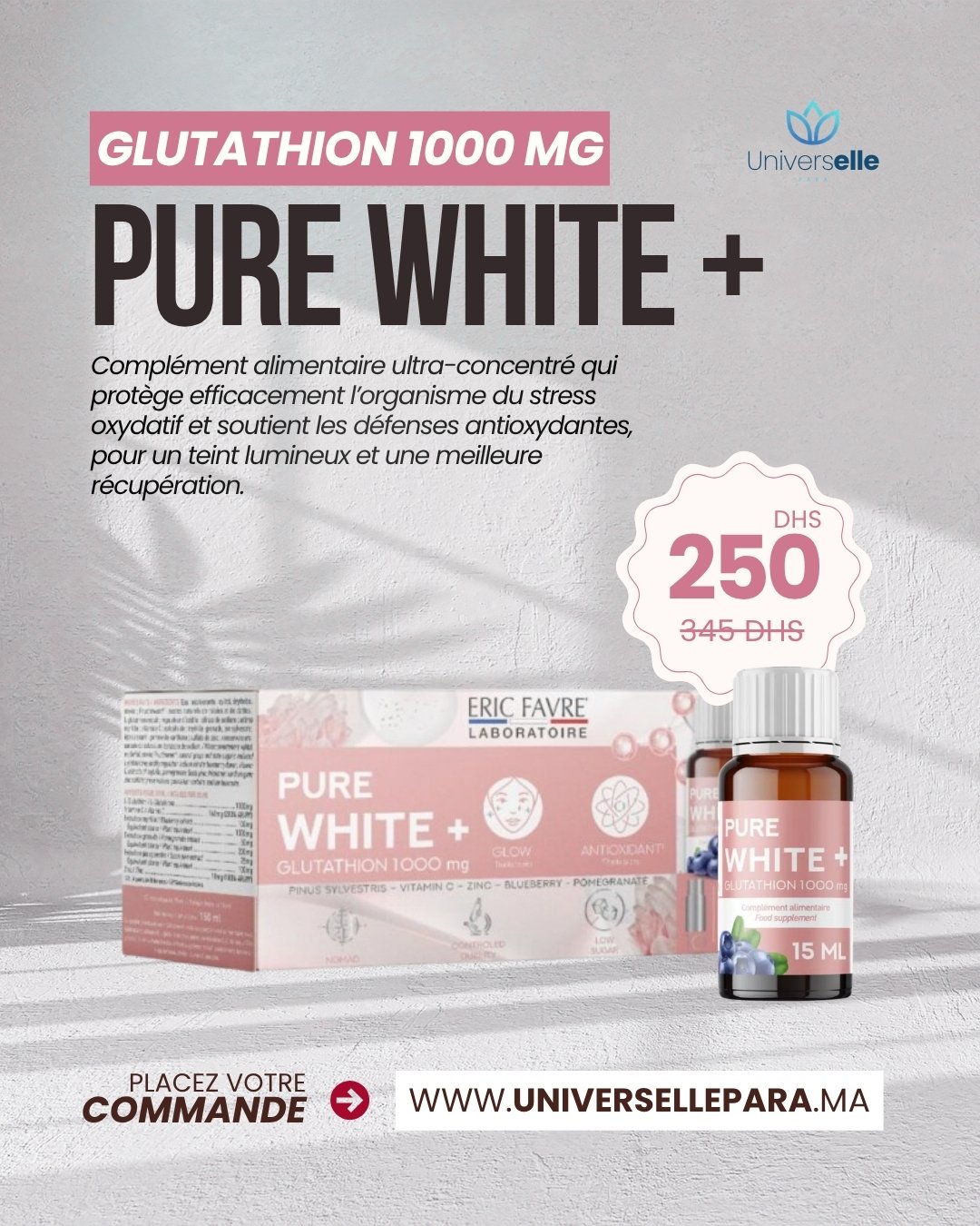 Eric Favre Pure White+ – Glutathion 1000 mg – Éclat & Détox (10 Monodoses)